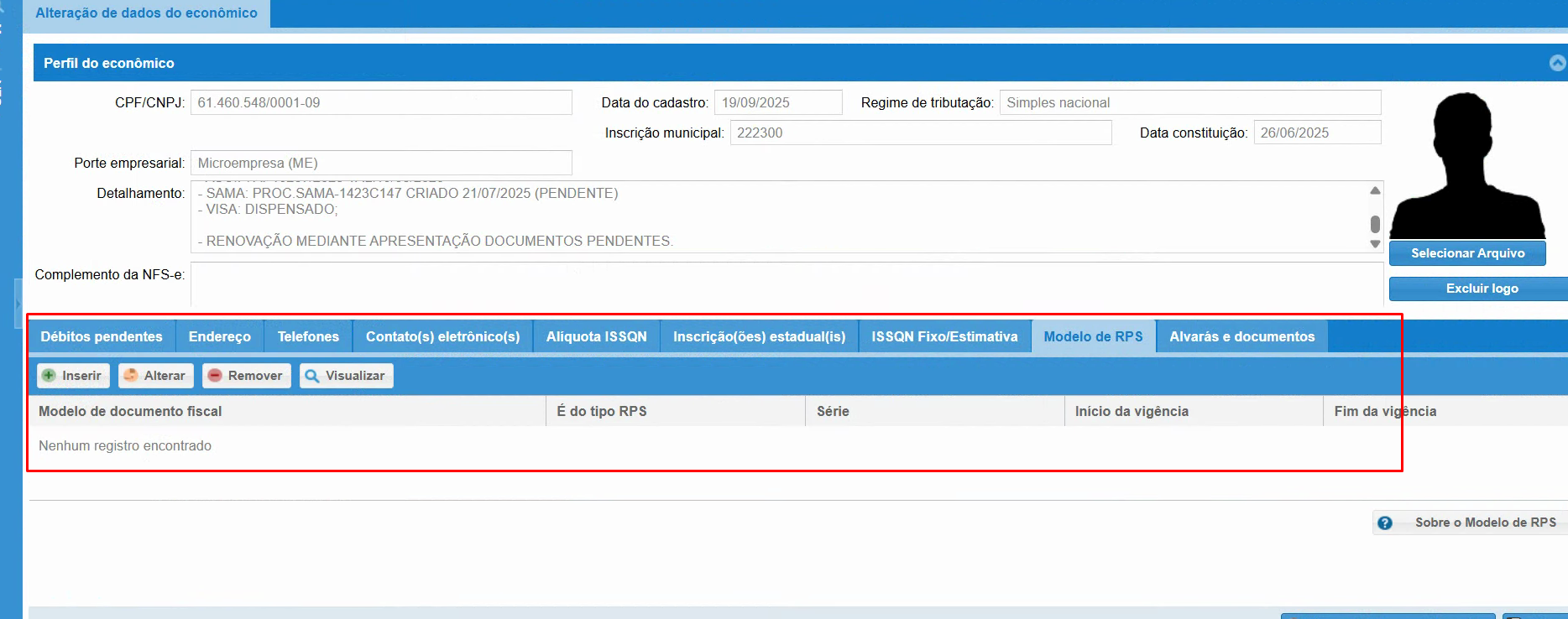 - Marcar Tipo de recibo provisório de serviços - RPS
