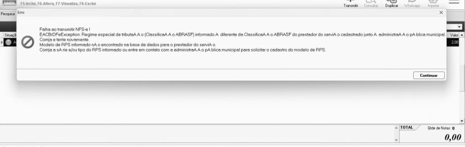 Tá acontecendo por causa de divergência entre o que você está enviando na NFS-e e o que a prefeitura tem cadastrado — a mensagem indica 3 pontos principais: regime especial de tributação diferente, inscrição municipal que não pertence ao CNPJ informado e modelo/tipo de RPS não cadastrado.
