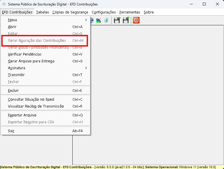 A geração do arquivo SPED Contribuições é feita em um aplicativo a parte do Ello.