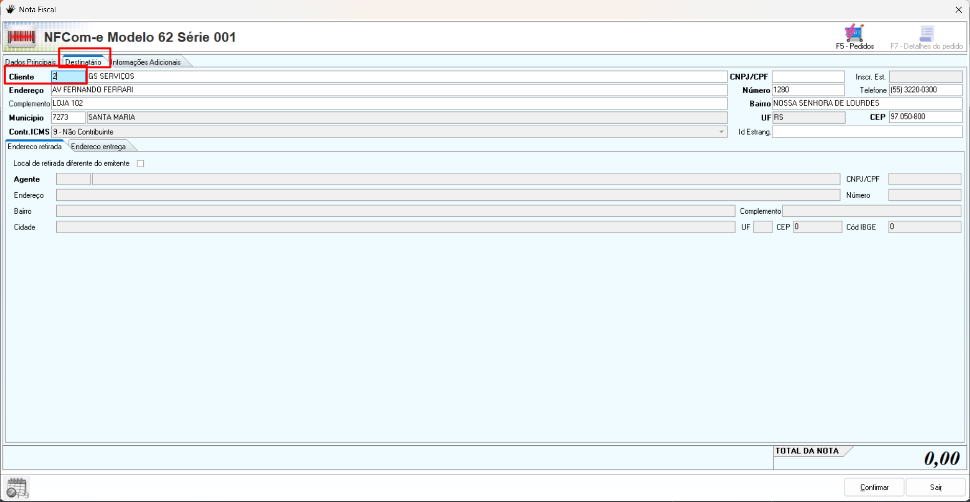 O cliente deve estar previamente cadastrado no sistema, com seus dados atualizados para a correta emissão do documento fiscal.