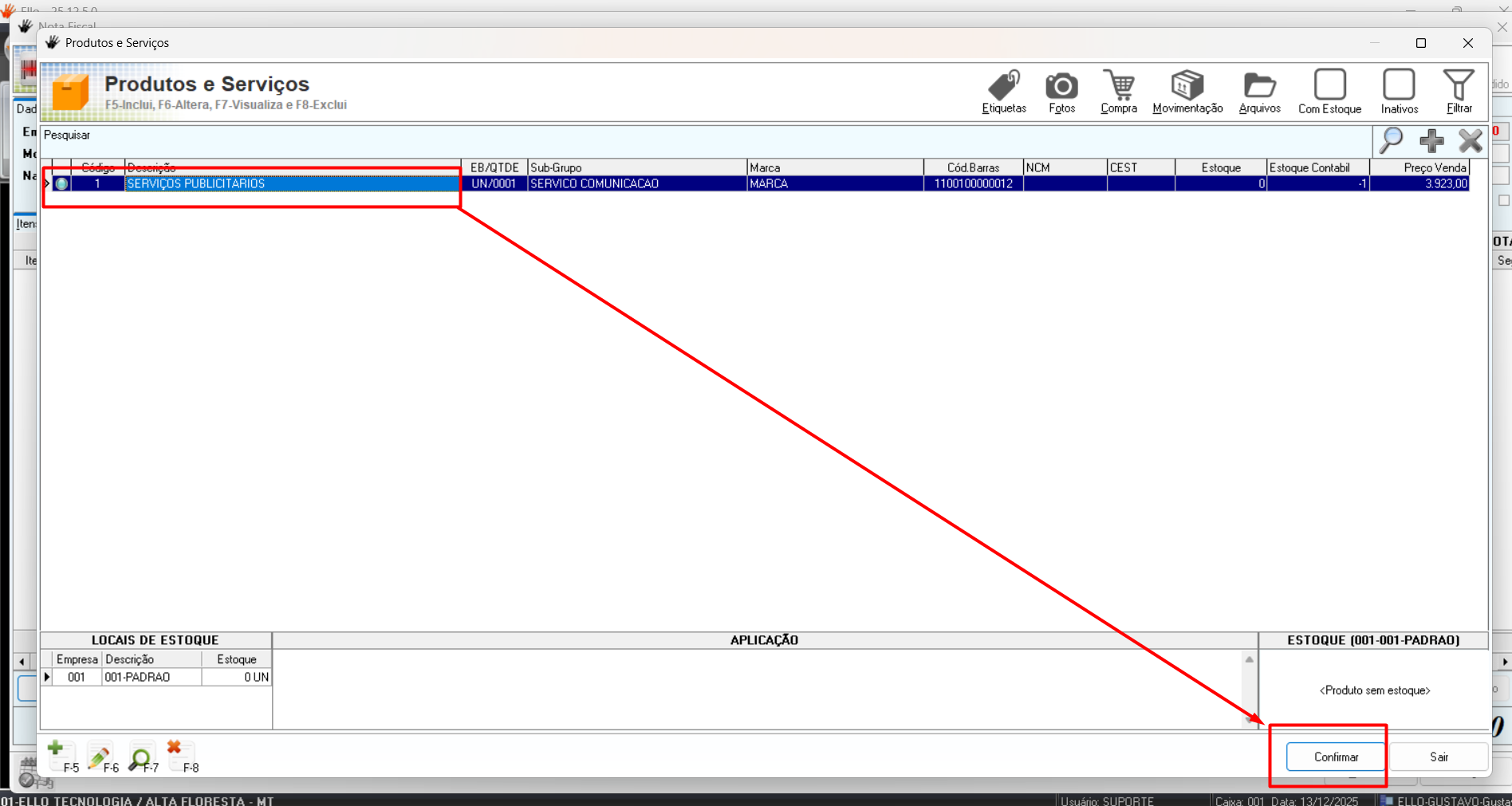 - Importante: Caso queira editar o preço do Serviço deve-se alterar o campo Valor Unitário destacado na Imagem e não o Total