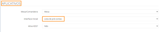 Na seção Aplicativo, configure o parâmetro Interface Inicial como “Lista de pré-contas”: