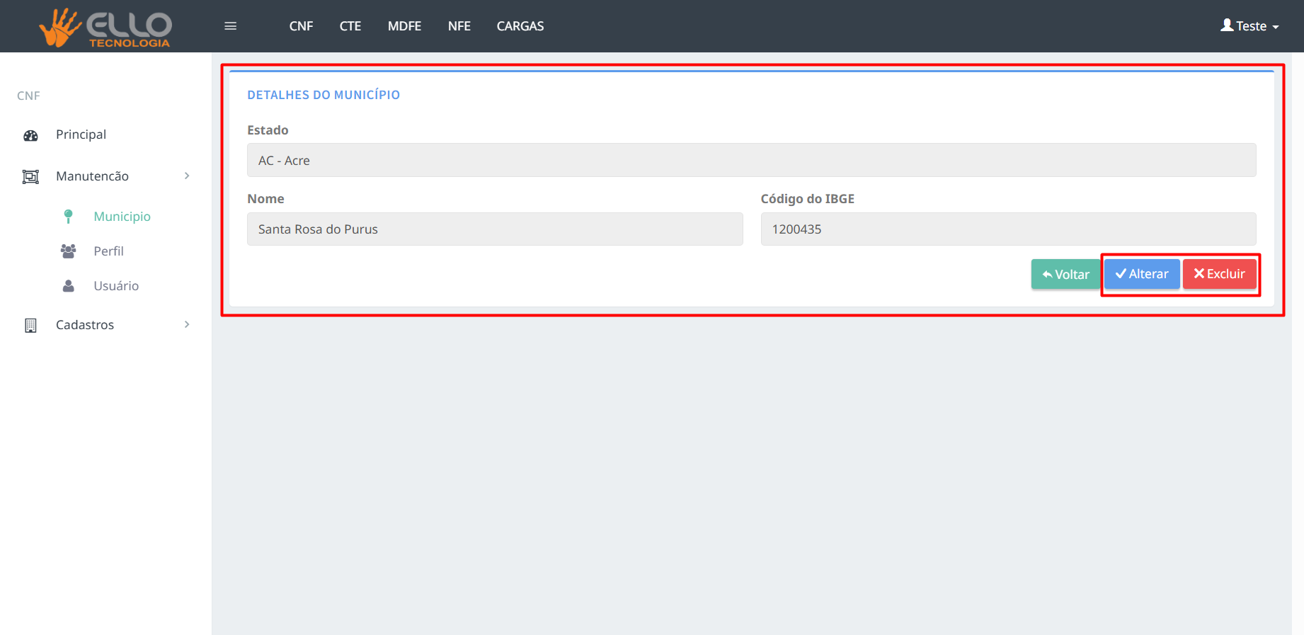 Na parte inferior, estão disponíveis as opções para alterar ou excluir o cadastro, caso seja necessário realizar alguma alteração ou remoção.